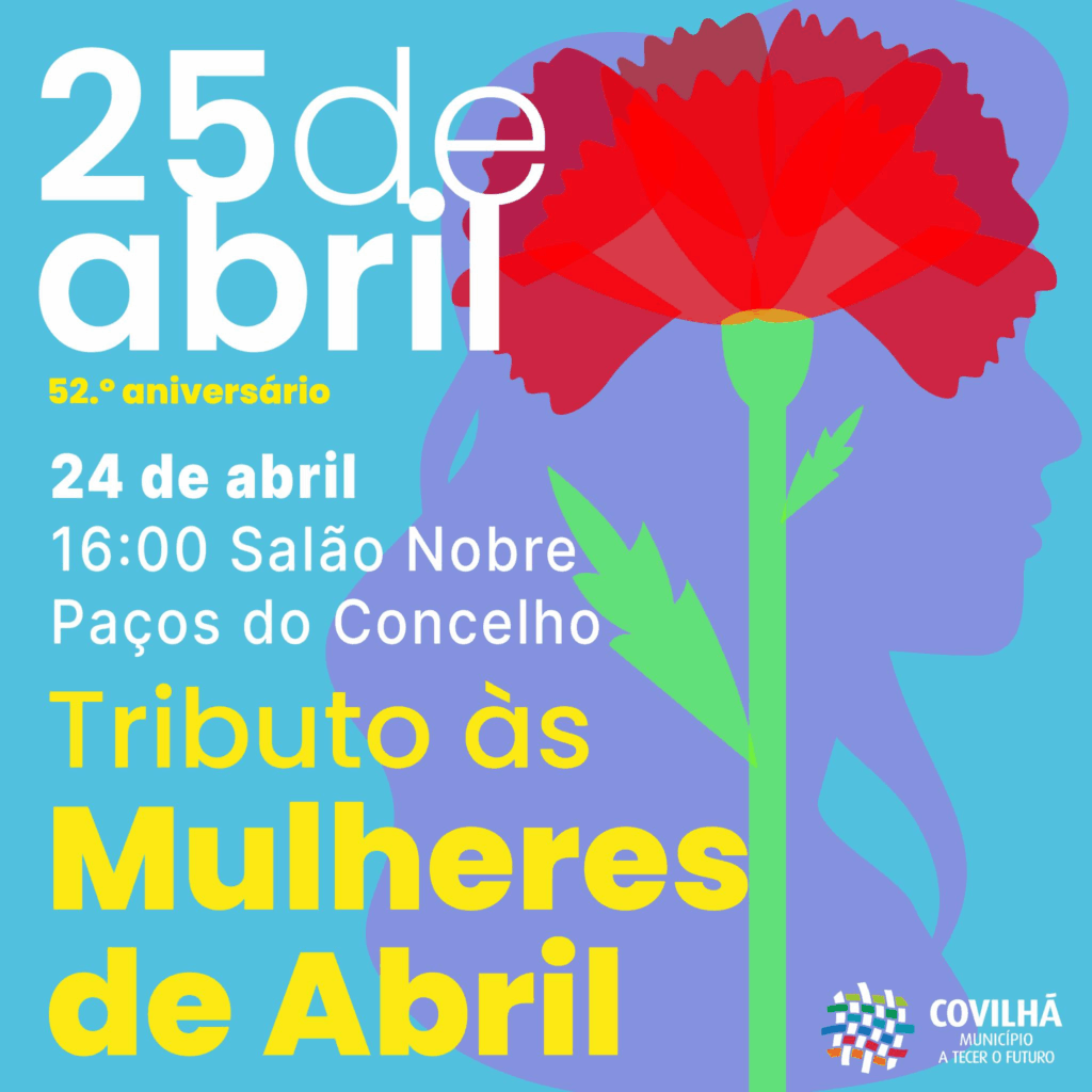 Para a semana, na sexta-feira, 24 de abril, o Salão Nobre dos Paços do Concelho, na Covilhã, recebe a iniciativa Tributo às Mulheres de Abril, integrada nas comemorações do 52.º aniversário do 25 de Abril. A sessão tem início marcado para as 16h00.