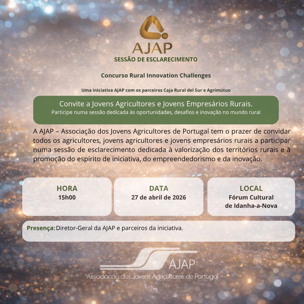 A AJAP, Associação dos Jovens Agricultores de Portugal, promove uma sessão de esclarecimento dedicada ao concurso Rural Innovation Challenges.