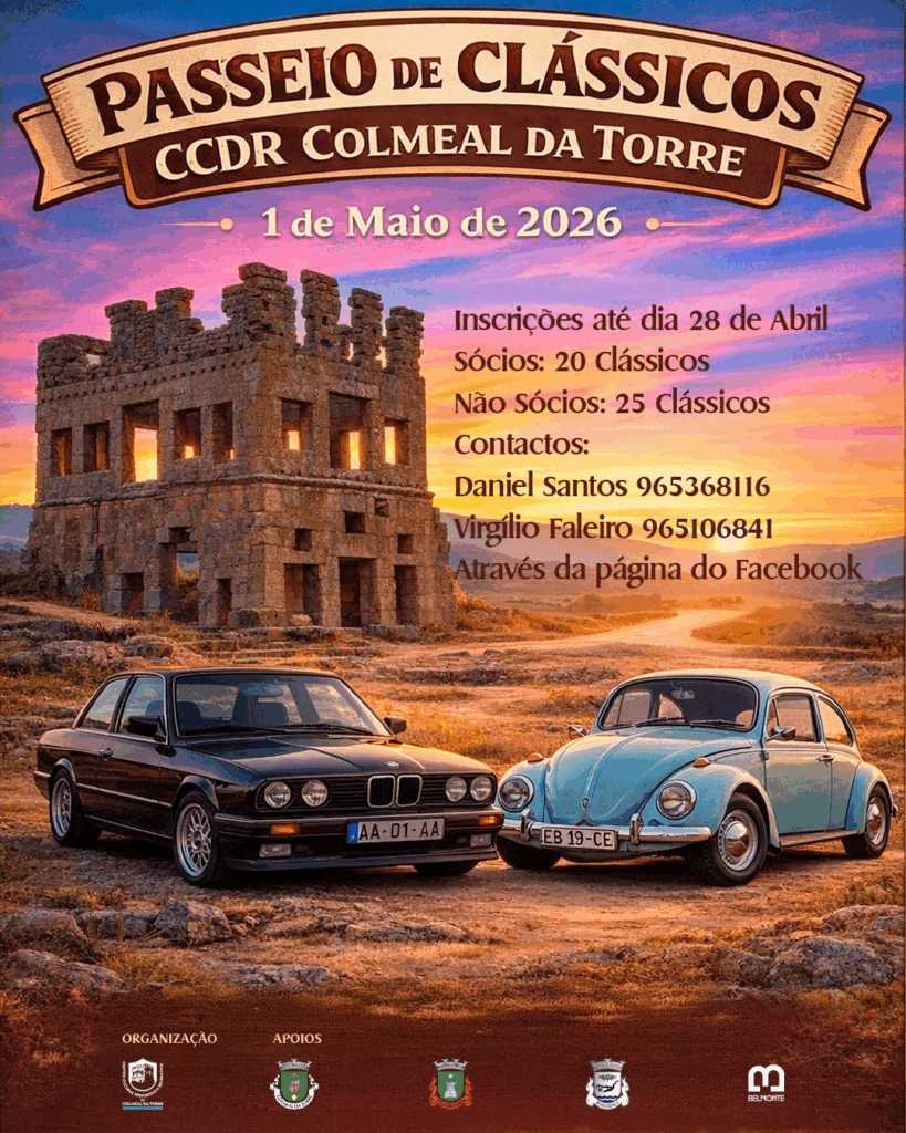 O CCDR Colmeal da Torre promove, no dia 1 de maio, um Passeio de Clássicos, iniciativa dedicada aos amantes de viaturas antigas e de convívio em torno do património automóvel.