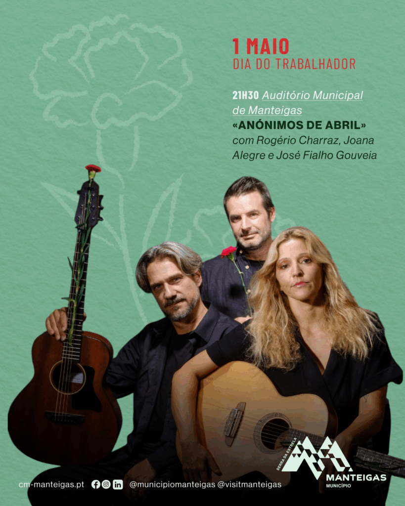 O Auditório Municipal de Manteigas recebe, no dia 1 de maio, às 21h30, o espetáculo “Anónimos de Abril”.