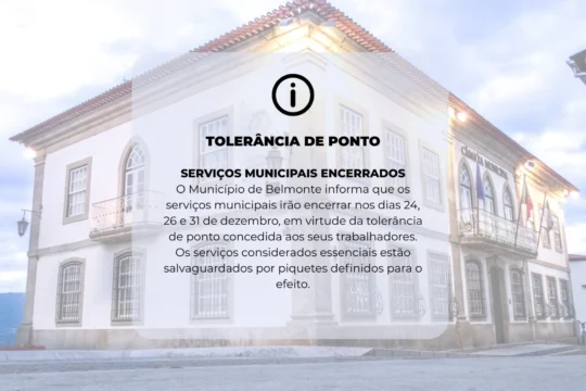 BEIRA INTERIOR Município de Belmonte encerra serviços municipais nos dias 24, 26... 23 de Dezembro, 2025