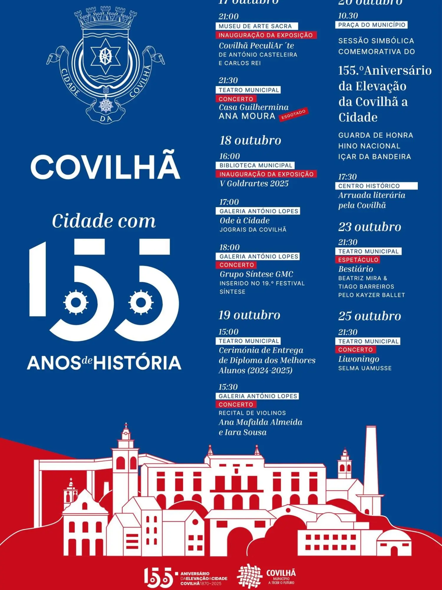 COVILHÃ Covilhã Assinala 155º Aniversário com Programa Cultural e Cerimónia Simbólica 14 de Outubro, 2025